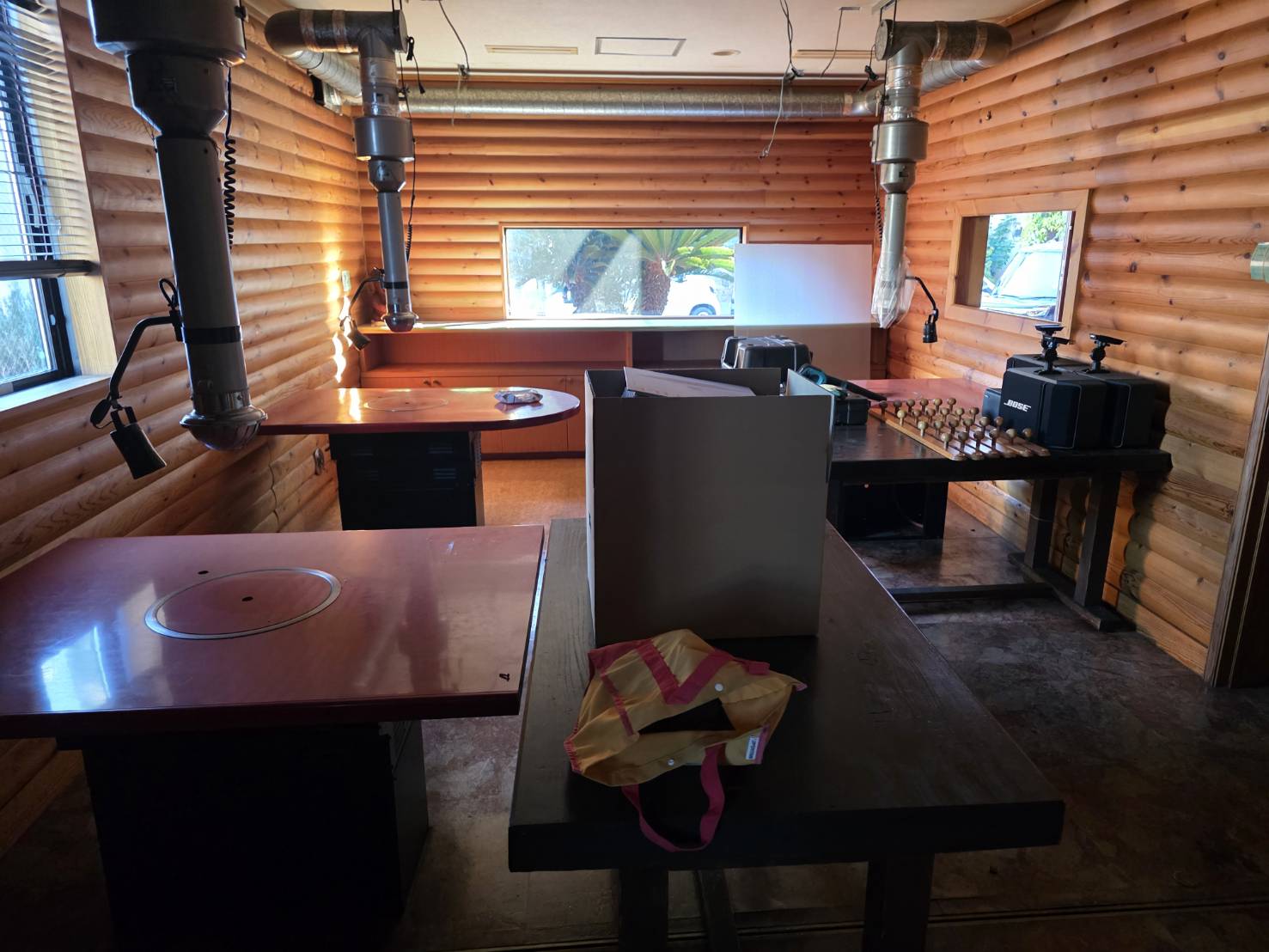 換気扇のダクトやカウンターの撤去~外看板撤去工事や店舗外の庭木撤去まで、必要箇所を事前にお打ち合わせを行いながら作業に着手させて頂きました。